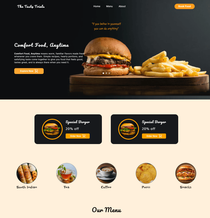 The Tasty Trials is a cozy café serving flavorful comfort food and beverages.